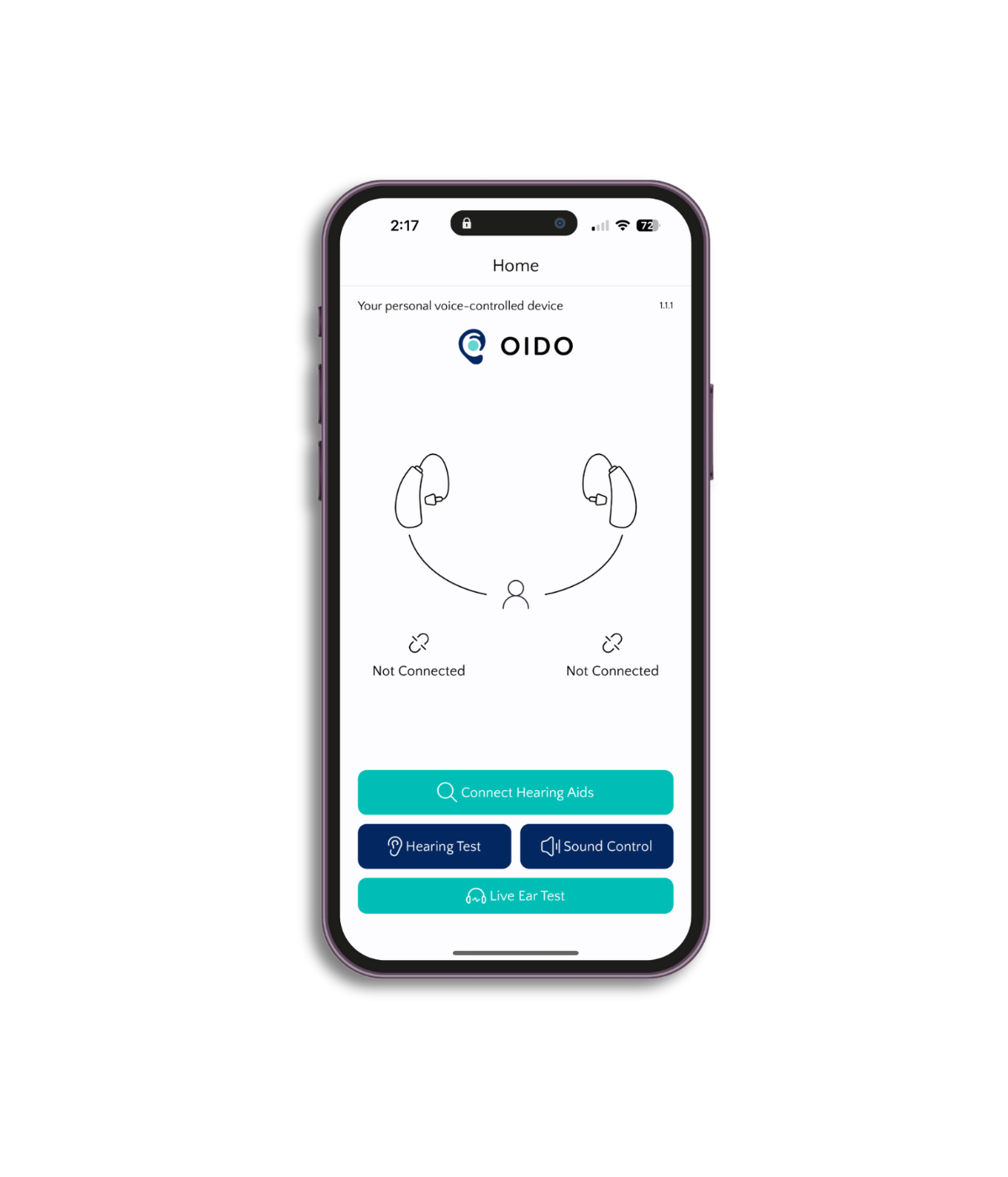 Your hearing, your way—right from your smartphone. The Oido App puts the power of an audiologist in your pocket, allowing you to calibrate your hearing aids, fine-tune your settings, and adjust your HearOne device in real time. Included at no cost with your hearing aids.